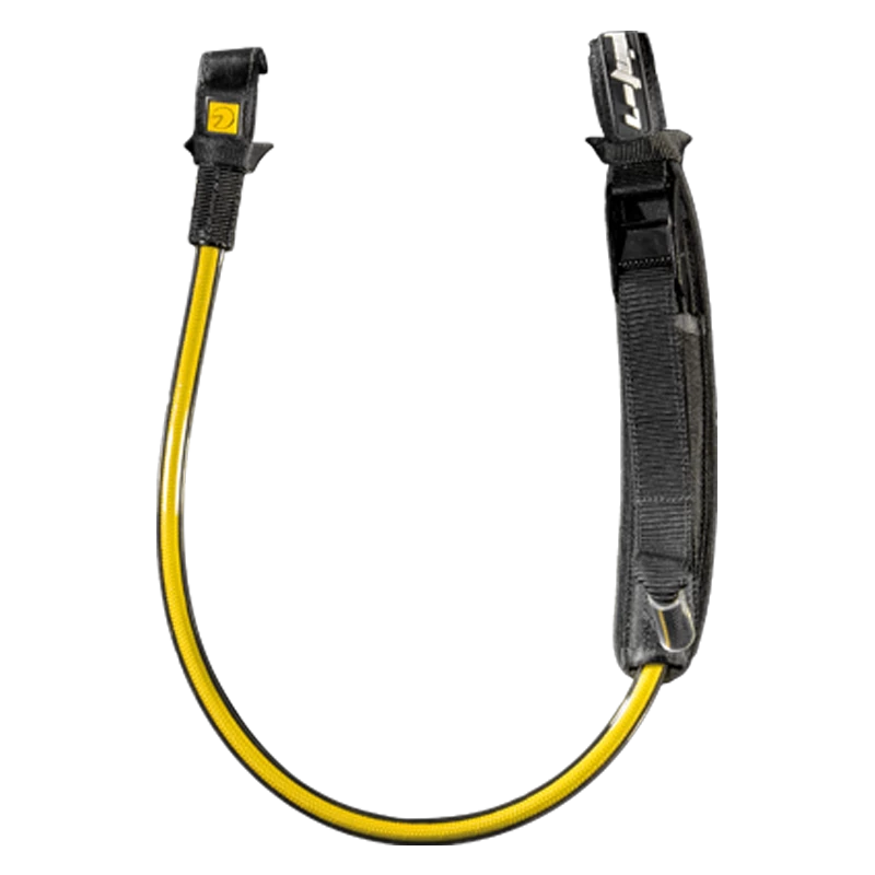 - Dicke Gummischlaufe zum Verkürzen der Trapeztampen, um bei leichtem Wind mehr Leistung zu erzielen. Die Schlaufe ist 3 Finger breit und Du kannst die Länge der Tampen ändern, wenn Du mit vollem Speed surfst.