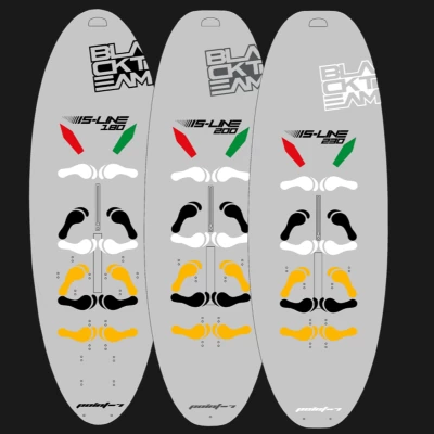 The board is looking unique thanks to the practical visual graphics which will allow the begginer to learn faster. The eva grip to allow the board to be more protected, but at the same time protecting the beginner, compared to having anti skid, or a slippery board which would demand shoes. 3 colour logo to distiguish the size from far to make it more practical for the instructors. A real professional image also for windsurfing centres.